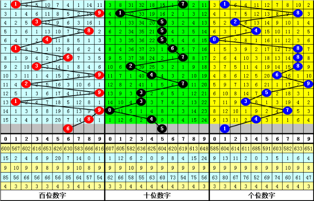 个位:其下期奖号该位1路走势非常低,只有2次,本期注意该位1路号码出现,参考号码1。