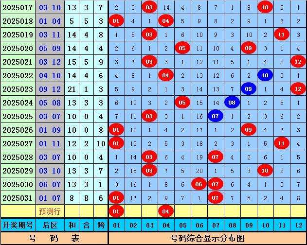后区分析:上期后区开出奖号01、07,为一大一小、全奇组合。