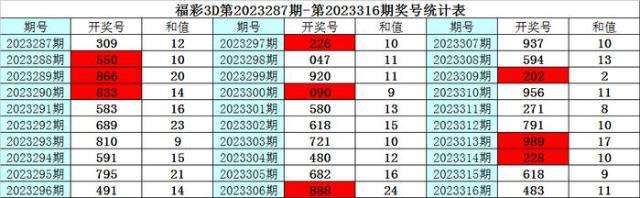 上期回顾:福彩3D第2023316期奖号为:483,其中奖号组选类型为:组六,奇偶比为1:2,大小比为1:2,012路比为1:1:1,和值为15,跨度为5。