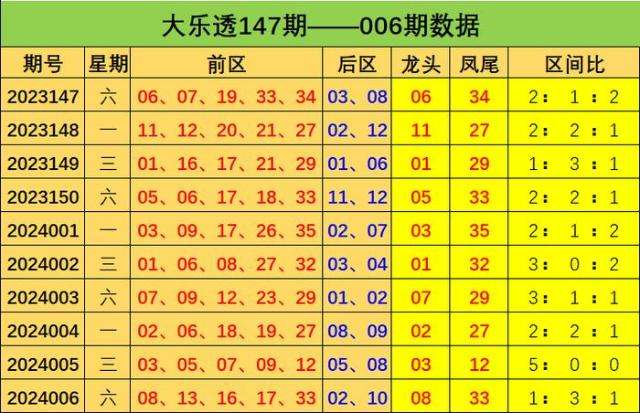 大乐透第2024006期出奖号统计:前区08 13 16 17 33,后区02、10,和值为87,跨度25,龙头08凤尾33,三区比为1:3:1,012路比为1:2:2,奇偶比为3:2,大小比为1:4,冷热比为3:2,0枚重号,1组连号。