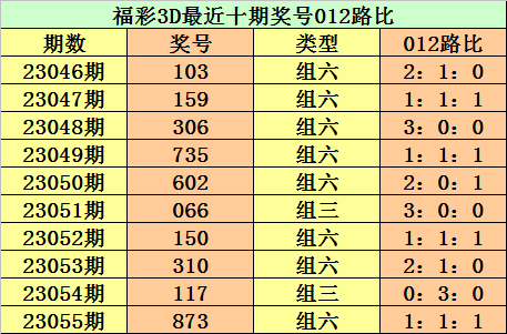 开奖回顾:第2023055期3D奖号为873。形态:组六,奇偶比2:1,大小比2:1,012路比为1:1:1。
