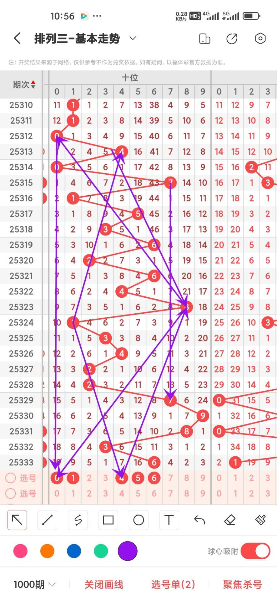 2025333期上期十位开出偶数6,我们通过走势图来看十位上500期,0-9下号数据和最大遗漏数据,其中0出现45次,1出现48次,2出现55次,3出现46次,4出现60次,5出现45次,6出现33次,7出现62次,8出现52次,9出现54次,0-9目前47下号最多,我们在回过头来看最大遗漏下号,0遗漏44次,1遗漏28次,2遗漏31次,3遗漏44次,4遗漏39次,5遗漏32次,6遗漏52次,7遗漏37次,8遗漏38次,9遗漏24次,目前遗漏中036遗漏最大,通过上面的走势分析我们可以看出目前十位上走势比较好的号码是0路,热号是1234号码我们可以关注下,015号码走势就有点冷淡,我们可以防守,今天十位我们重点关注01456,具体看下面走势图