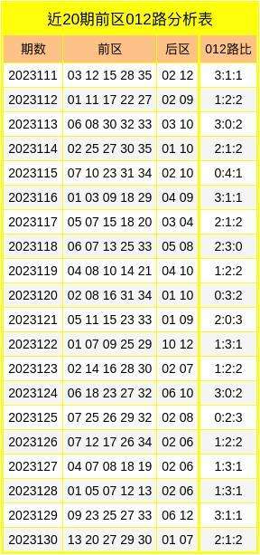 综合分析,第23131期大乐透前区012路比参考2:1:2。