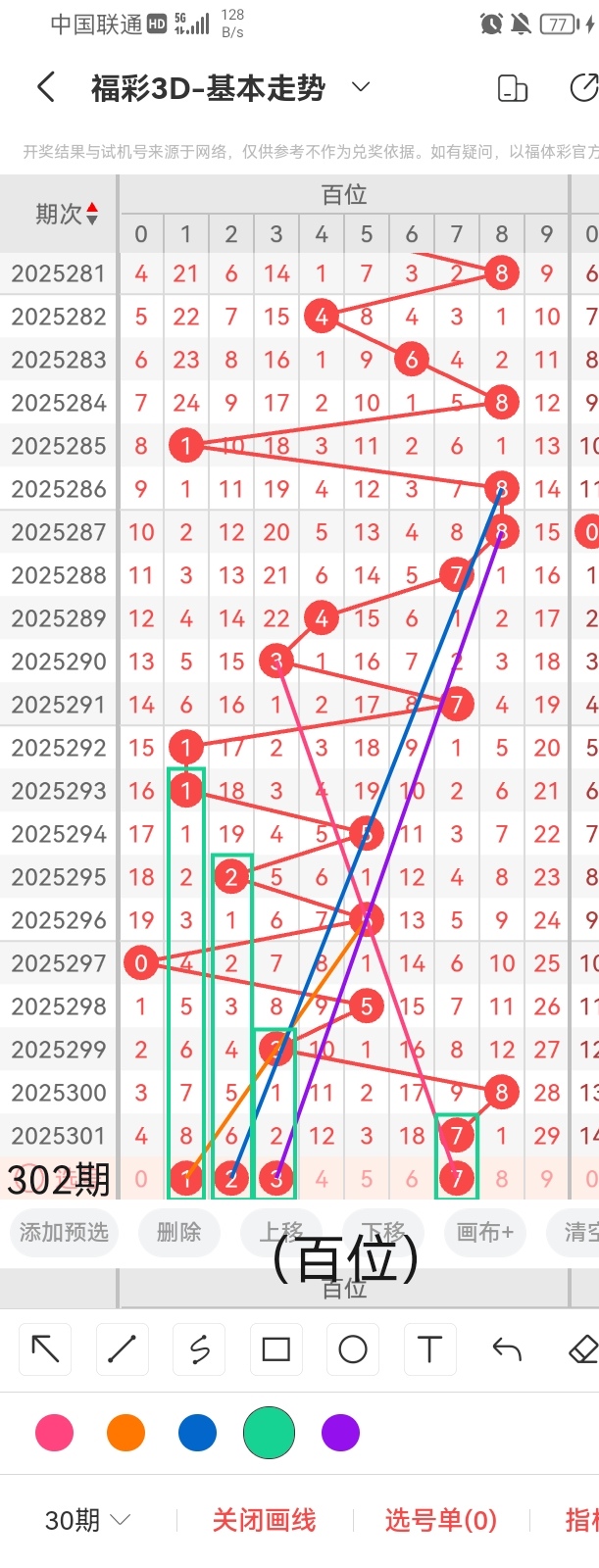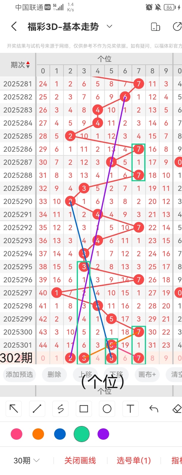 通过以上对上期的简单回顾,下面进入2025302期(下面简称本期)的选号分析: