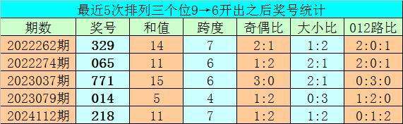 1、排列三前两期个位分别开出号码9和6,历史上个位号码连续两期分别出现9和6时,共有66次。在最近5次出现时,其下期分别出现号码:329、065、771、014、218;