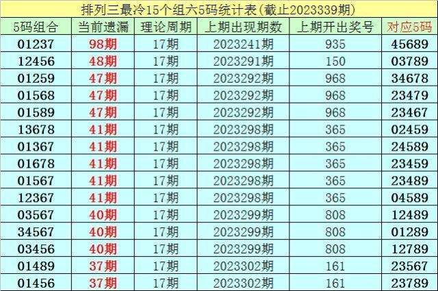(4)排列三第2023339期遗漏值最大的十个5码组六组合解冻了0个;