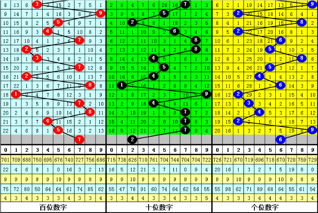 012路分析:最近10周星期三奖号012路总比例为15:8:7,012路号码轮空期数比为1:3:4,上周星期三奖号012路比为0:2:1,本周星期三预计012路号码平衡,参考012路比1:1:1。