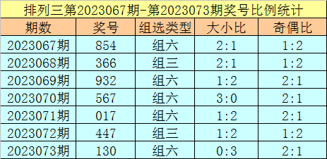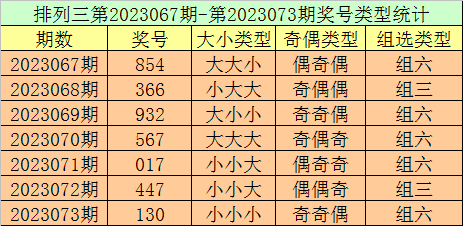 排列三第2023073期回顾:奖号130,奇偶比2:1,大小比0:3,和值4,类型:组六。