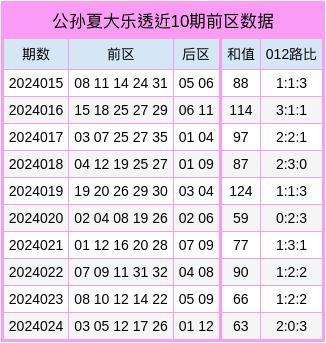 大乐透第24024期开出奖号:前区03、05、12、17、26;后区01、12。前区和值为63,012路比为2:0:3。