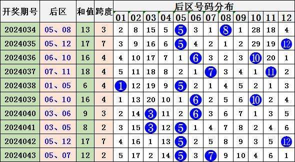 后区走势分析:上期开出号码05 07,为奇奇形态,近10期后区奇奇形态4次,奇偶形态4次,偶奇0次,偶偶2次。本期推荐偶奇形态开出。推荐号码02 11。