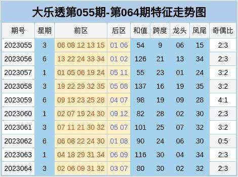 上期回顾:大乐透23064期开出奖号:前区02、06、09、31、32,后区 03、07。
