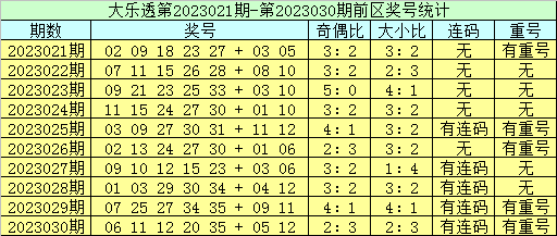 大乐透第2023031期前区奖号分析: