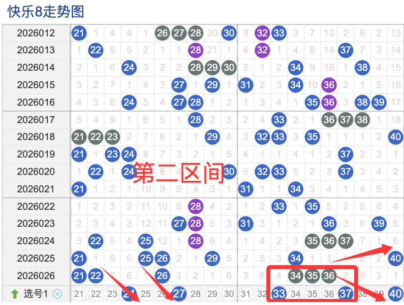 ·上期二区开出6个奖号(21.22.26.34.35.36)上期回顾二区开出6个奖号二区间在上期落位同比前期的话呈现了一个不变的落位趋势,先来看本期号码24整体活跃度较热,在近 30 期里有一定的间歇性出现,不是每期都开,近期整体走势还是很稳定。号码27近期热度较热,间隔性还是很好,说明其在当前阶段活跃度较温热注意防守。号码33近期活跃度较温热有一定的间歇性近期整体走势相对不是平稳没有特别明显的冷热趋势变化,号码37近30期内活跃度较热,没有明显的连续出现形态走势,整体表现比较稳定。