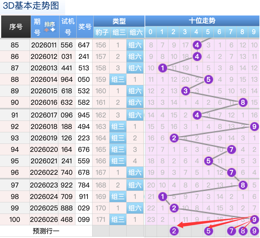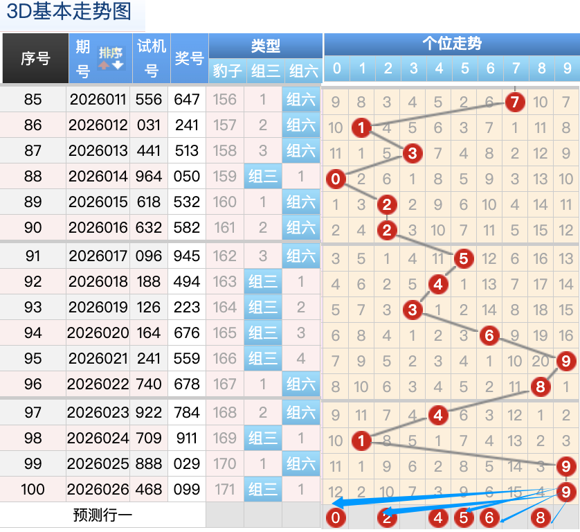 上期3D十位开出的奖号是9号,上期在十位上9号球这个号码在上期是一个大码回补的落位点,本期来看5号和7号球在十位上要注意这两个号码是有机会继续顺着上期的9号球继续走出两个常搭配落位趋势这里的两码是小周期的落位注意防守一码就好了,2号球还是个常搭配码折返的落位点,然后0号球还是一个冷码回补的落位形态也是一个冷码落位形态回补,再来看9号球是重码回补这个点位注意防守。