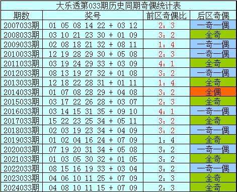 前区第三位:在历史第033期同期开奖中分布范围在04-28区段,平均值为16。2,奇偶比为6:12,目前奇数号码连续遗漏了3年,今年同期重点关注奇数号码回补,推荐号码23。