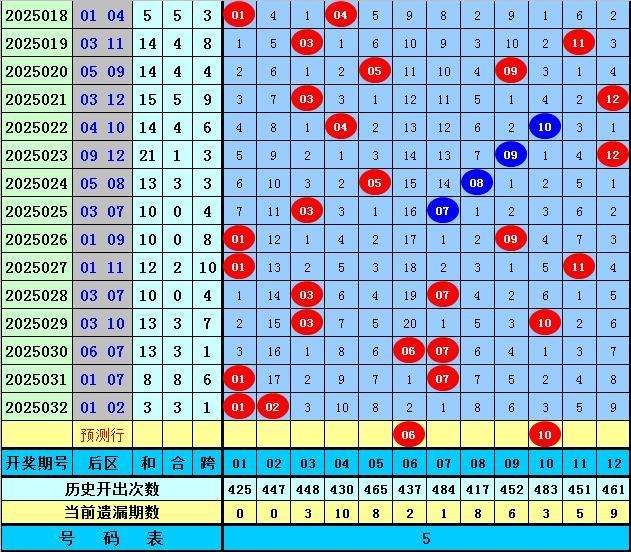 前区第一位:在历史第033期同期开奖中分布范围在01-15区段,平均值为5,奇偶比为10:8,目前奇数号码连续遗漏了3年,今年同期重点关注奇数号码回补,推荐号码05。