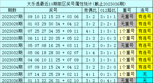 前区重号分析:最近10期有6期奖号包含了重号,共开出6个重号,上期前区没有出现重号,本期注意重号回补,关注上期奖号13。