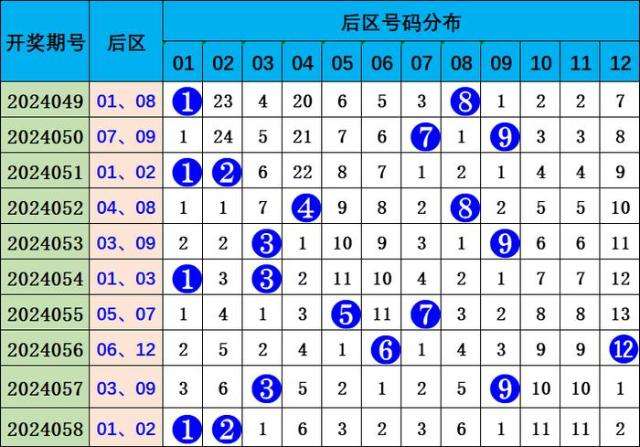 前二区(13-24):最近10期共开出18个号码,出号较热,该区奖号本期关注:17、23。