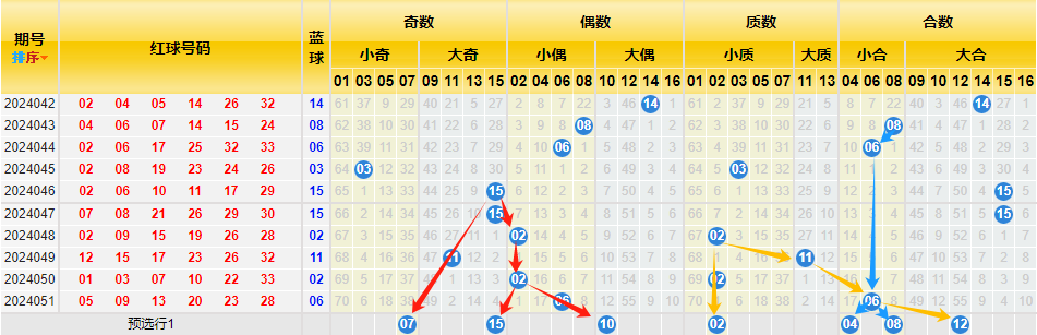 上期开出06。根据蓝球近十期数据统计:小奇数出现1次,大奇数出现3次,小偶数出现5次,大偶数出现1次,小质数出现3次,大质数出现1次,小合数出现3次,大合数出现3次,近期小数开始逐渐转弱,因此本期建议看大数。再来看历史数据统计,小奇数出现793次,大奇数出现796次,小偶数出现760次,大偶数出现797次,小质数出现980次,大质数出现390次,小合数出现573次,大合数出现1211次,从上述数据可以看出小奇数、大偶数、小质数、大合数历史数据占优,结合近十期数据对比,故本期结合上述数据并根据斜率对称原理看好07 15 16 02 04 06 12.