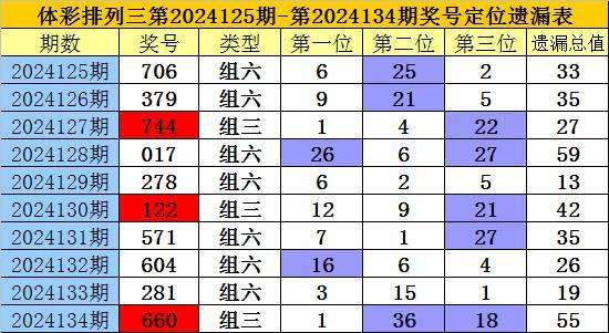 开奖回顾:排列三第2024134期奖号为:660,各位号码遗漏值分别为1、36、18,遗漏总值为55。