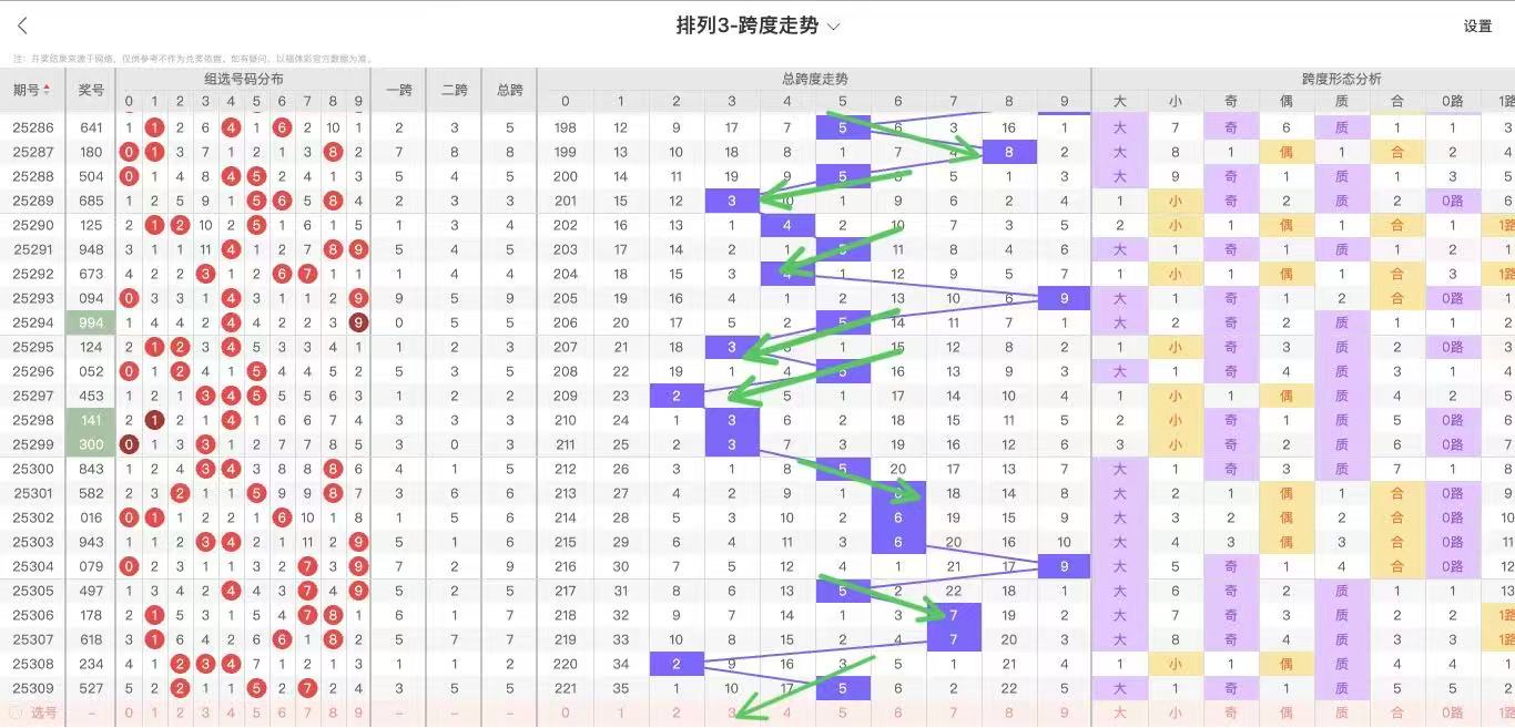 10期内跨度走势为:5-6-6-6-9-5-7-7-2-5,10期内大小跨比:9:1,奇偶跨比6:4,百期内跨度5共开出的18次,下期数据:1 2 6 7 2 8 3 7 4 9 8 3 4 3 2 6 7 近期度较热,考虑跨度5开出后容易出大跨度,近期大小规律下小:奇:质,所以接下来继续小跨,奇跨度表现!