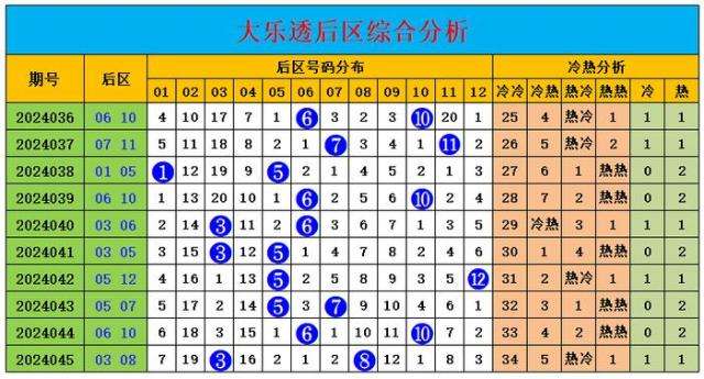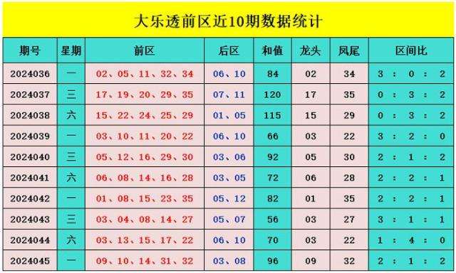 上期回顾:大乐透第2024045期:前区09、10、14、31、32,后区03、08,前区奖号和值为96,三区比为2:1:2,后区开出热冷组合03、08
