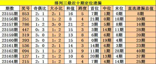 开奖回顾:排列三第2023164期奖号:215,定位直选遗漏值7期、4期、14期,遗漏总值为25期。