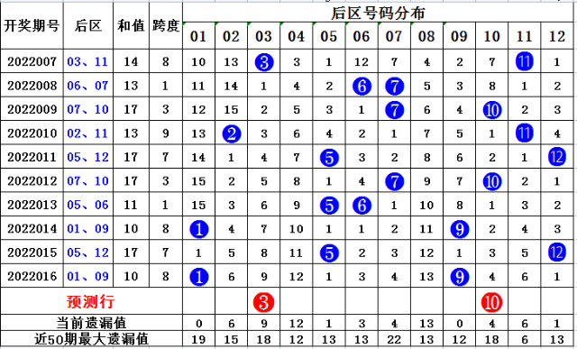 后区走势分析:上期开出号码01 09,为奇奇形态,近10期后区奇奇形态3次,奇偶形态5次,偶奇2次,偶偶0次。奇偶走势较热,本期推荐奇偶形态开出。推荐号码03 10。