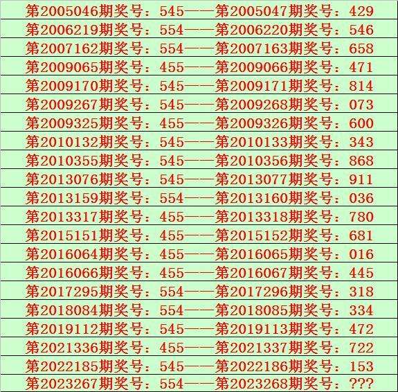 排列三第2023268期开奖日期:2023年10月9日,历史上第268期已开出了18次奖号,历年同期号码分别为:855、638、639、595、073、593、378、630、831、740、808、076、317、187、081、635、183、384。