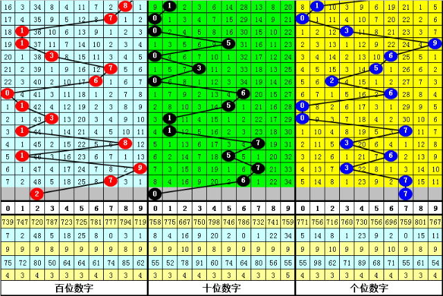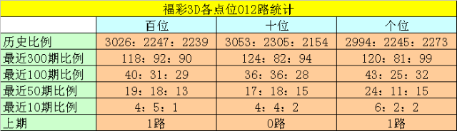 百位分析:该位最近10期开出了4个0路号码、5个1路号码、1个2路号码,1路号码热出,2路号码走冷。本期排除1路号码,参考号码:2。
