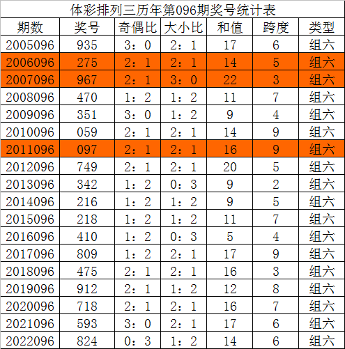 在历年排列三第097期开奖中:次豹子号码出现1次,组三号码出现2次,组六号码出现14次。组六号码出现比例略高,本期奖号形态参考:组六号码。