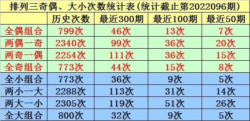 在历年排列三第097期开奖中:,号码大小比为27:24,大号表现较热,本期看好大号再次热出,大小比关注2:1。