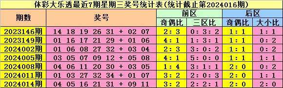 体彩大乐透上周星期三(第2024014期)奖号为04 05 16 21 31 + 09 11,其中前区奖号奇偶比为3:2,三区比为2:2:1,后区奖号奇偶比为2:0,大小比为2:0。