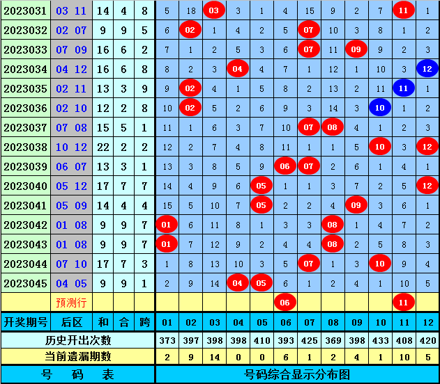 后区推荐(5码):01、06、09、11、12