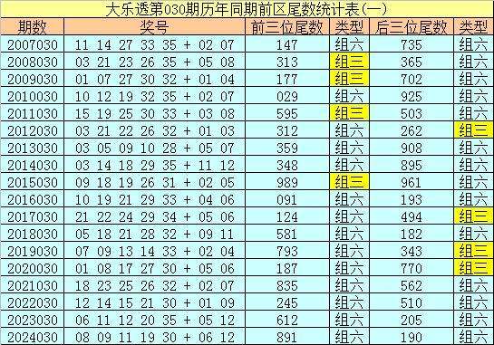 大乐透历年同期第030期后区尾数奇偶比为19:17,最近5年尾数奇偶比为5:5,后区尾数大小比为18:18,最近5年尾数大小比为6:4,本期后区注意号码04、05、06、09、12,后区两码关注09、12。