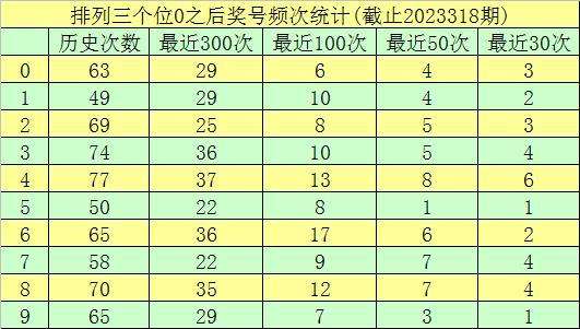 第三位杀号:第三位上期出现奖号0,该位历史上奖号0已开出了641次,最近100次第三位开出0时,下期号码0-9分别落号:号码6→17次,4→13次,8→12次,1、3→10次,7→9次,2、5→8次,9→7次,0→6次。