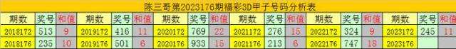 陈三哥3D第2023176期甲子号分析: