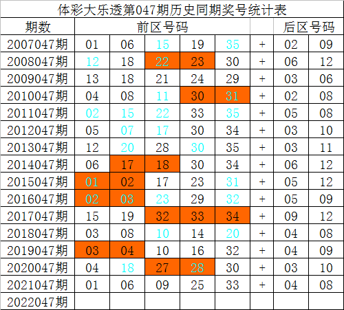 彤彤第2022047期体彩大乐透前区遗漏分析:(定义:前区遗漏0-4期号码为热码,遗漏5-12期号码为温码,遗漏13期及13期以上为冷码)