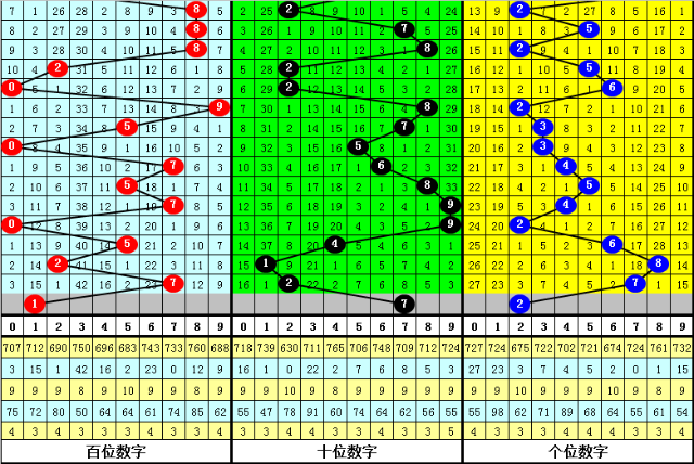 另外,两码合出现期数从高到低分别为:4开出9期,3开出7期,2、5、6开出6期,7开出5期,1开出4期,0、8、9开出3期,本期两码合参考:3、8、9。