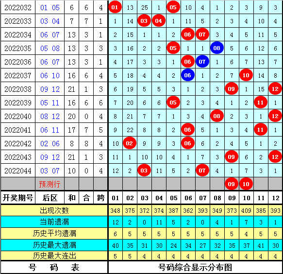 后区判断:上期后区奖号为03和07,开出冷码+温码组合。最近十期后区开出11个热码、6个温码和3个冷码,本期预计奖号关注热码+温码组合,参考两码09、10。
