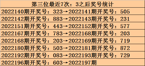 第三位冷码判断:上期开出奖号3,遗漏值为3期,目前该位最冷号码为6,遗漏值为41期,本期继续排除。