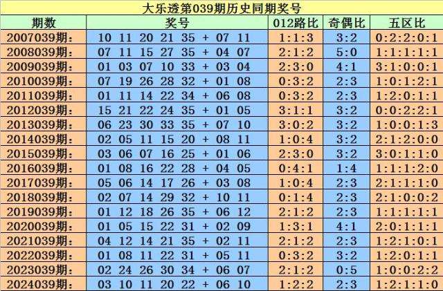 小霸王大乐透第2025039期历史同期后区定位分析