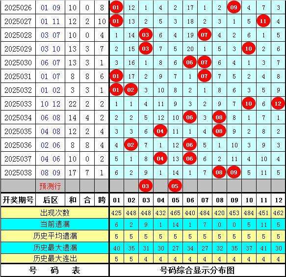 上期开奖:大乐透第2025038期开奖:07、08、20、26、34+08、09,前区012路比为0:2:3,奇偶比为1:4,五区比为1:1:1:1:1,大小比为3:2。