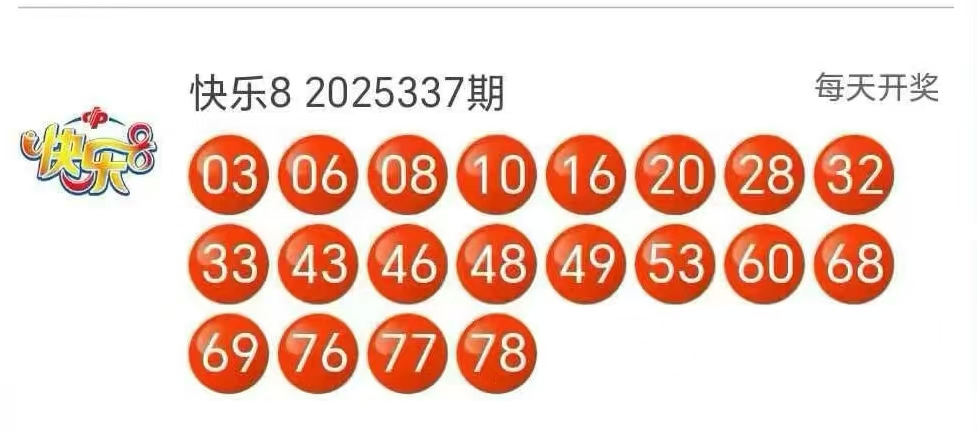 首先来回顾快乐8第2025337期开奖号码: