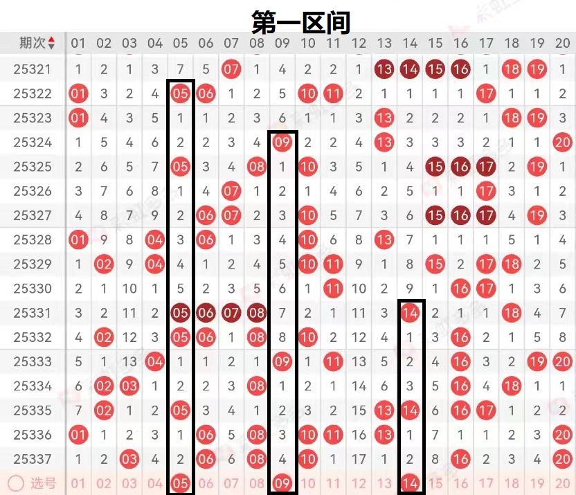 上期第一区间开出(03 06 08 10 16 20)六个号码球。上期一区间六个号码球在一区间落位,区间走出热态六码出号区间走出热态趋势,一区间前端开出03-06对应号码球落位。后端开出独码20号码球开出,那么通过分析研判从区间的落位趋势去看一区间整体区间落位号码分布在区间的前后两端。那么本期我们在一区间进行研判时一定要考虑后端号码的回补落位,通过区间的走势特点去研判本期的走势,中后端号码球走冷开出。我们要注意区间冷态号码球的回补开出,那么本期我们要注意区间的走势端号码趋势转换的可能,因此我们要谨慎操作防止区间走出回补态更为合理。
