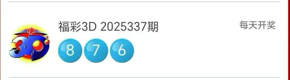 首先一起来回顾3D第2025337期开奖号码: