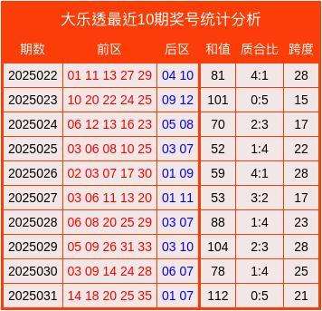 最近10期大乐透奖号统计分析表