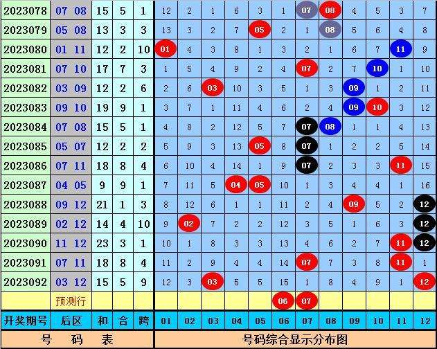 后区分析:上期后区两码开出03和12,最近10期后区奖号奇偶比为12:8,本期后区看好再出一奇一偶组合,关注两码06+07。
