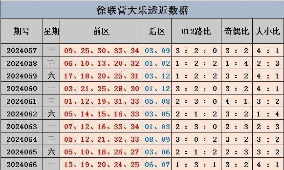上期回顾:前区13 19 20 24 25,后区06 07,当期前区号码012路比1:3:1,奇偶比3:2,大小比为4:1。