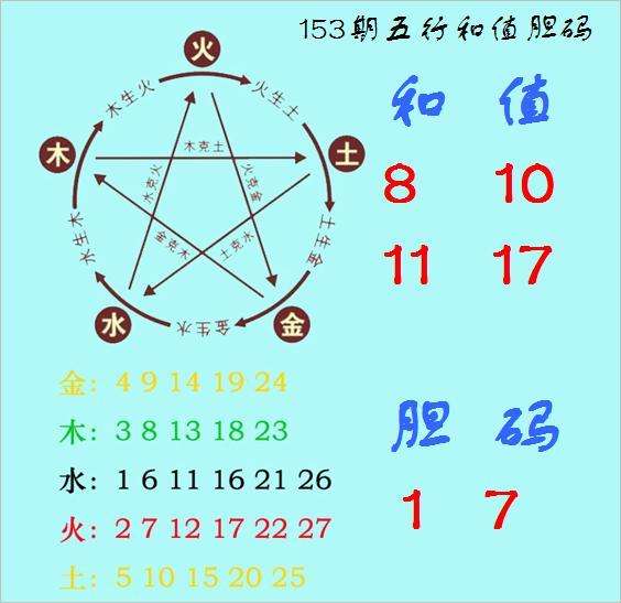 福彩3D第2023153期神算天五行和值胆码图